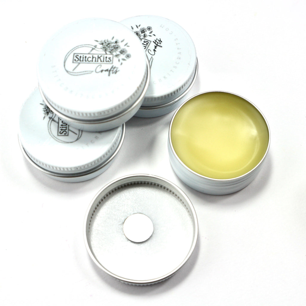 To add to the functionality of this conditioner I have added the option of a magnet turning it in to a handy needle minder. Keep these little tins of bees wax in your sewing basket for waxing your thread. Run your thread through it to strengthen your threads, avoid tangles and make it easier to thread your needle.