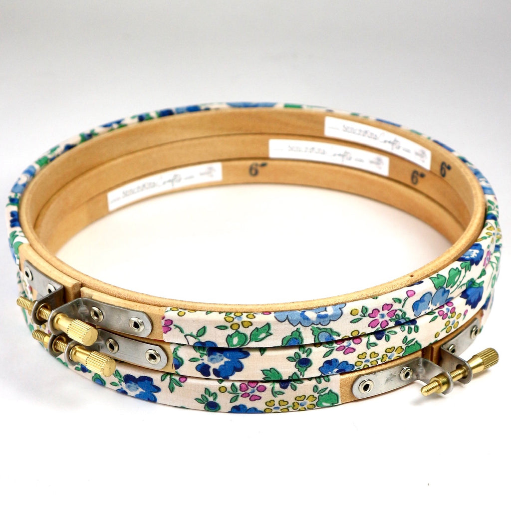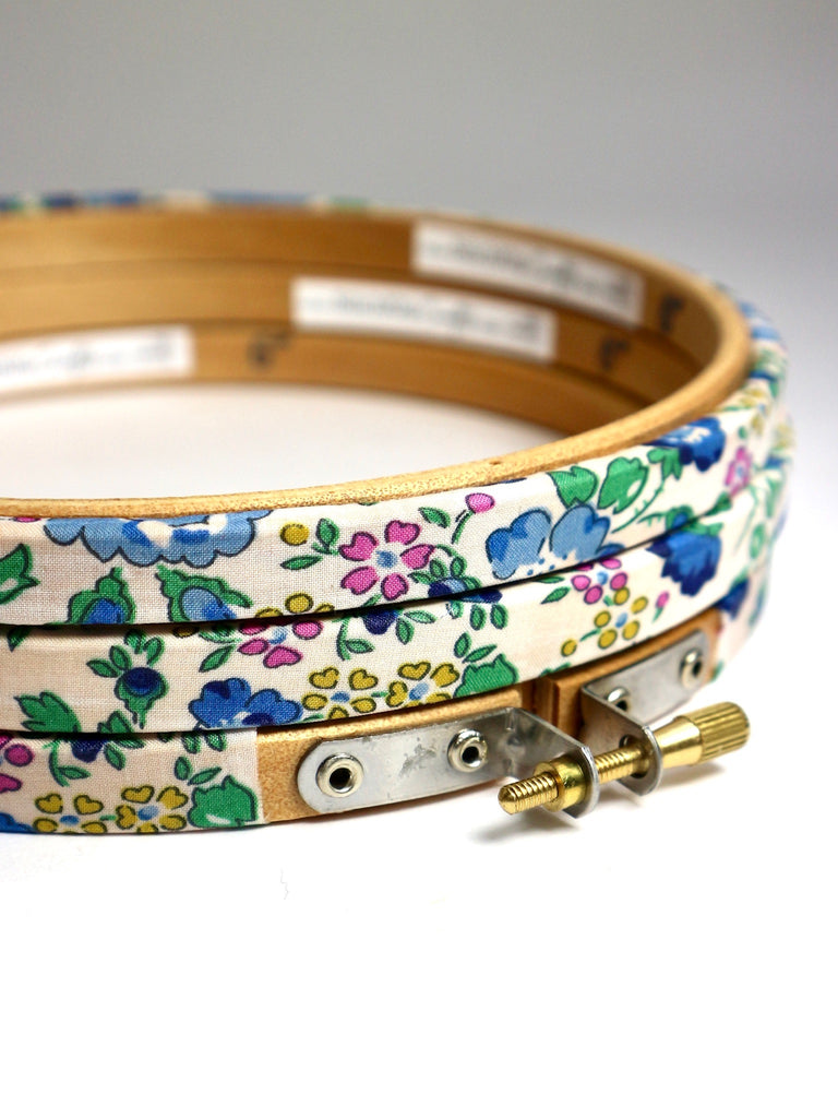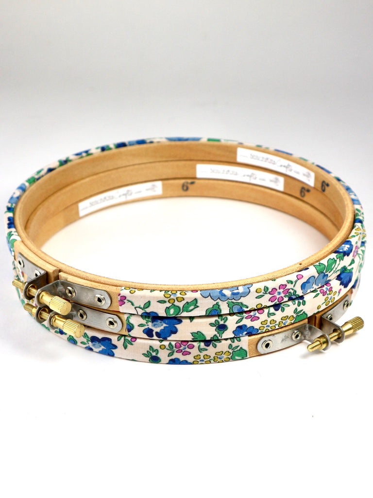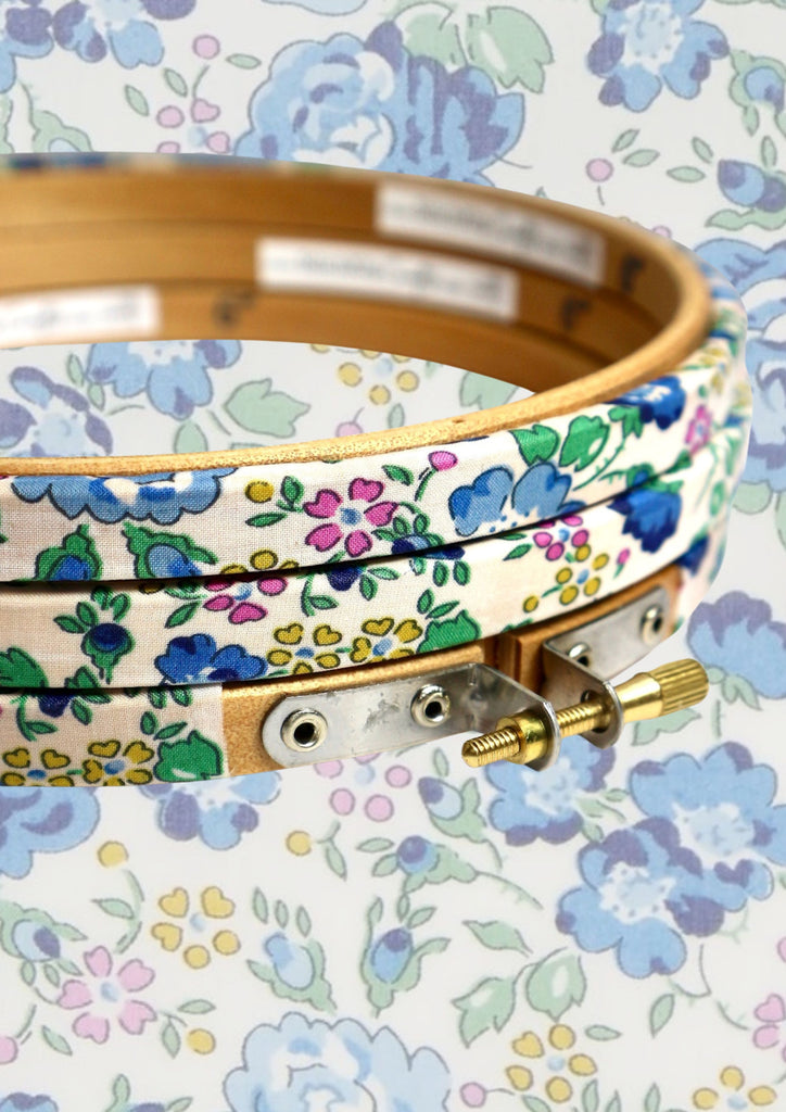 Petty embroidery hoops, hand covered with a fine Liberty of London fabric.
