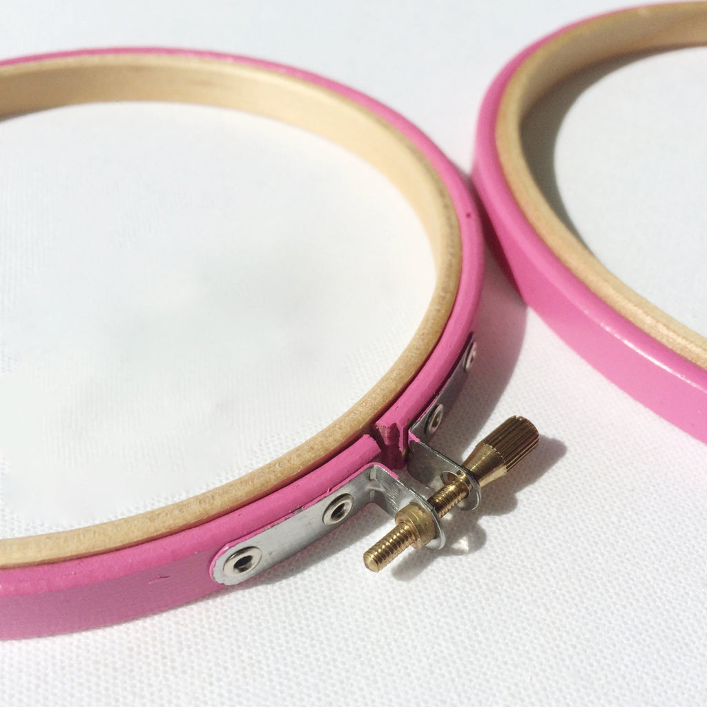 These bright pink embroidery hoops are a beautiful way to finish your hand embroidery and other textile projects. Picking the right coloured frame can really make your needle work pop.