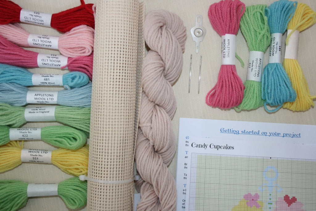 Candy Cup Cake, Wool Cross Stitch Kit.