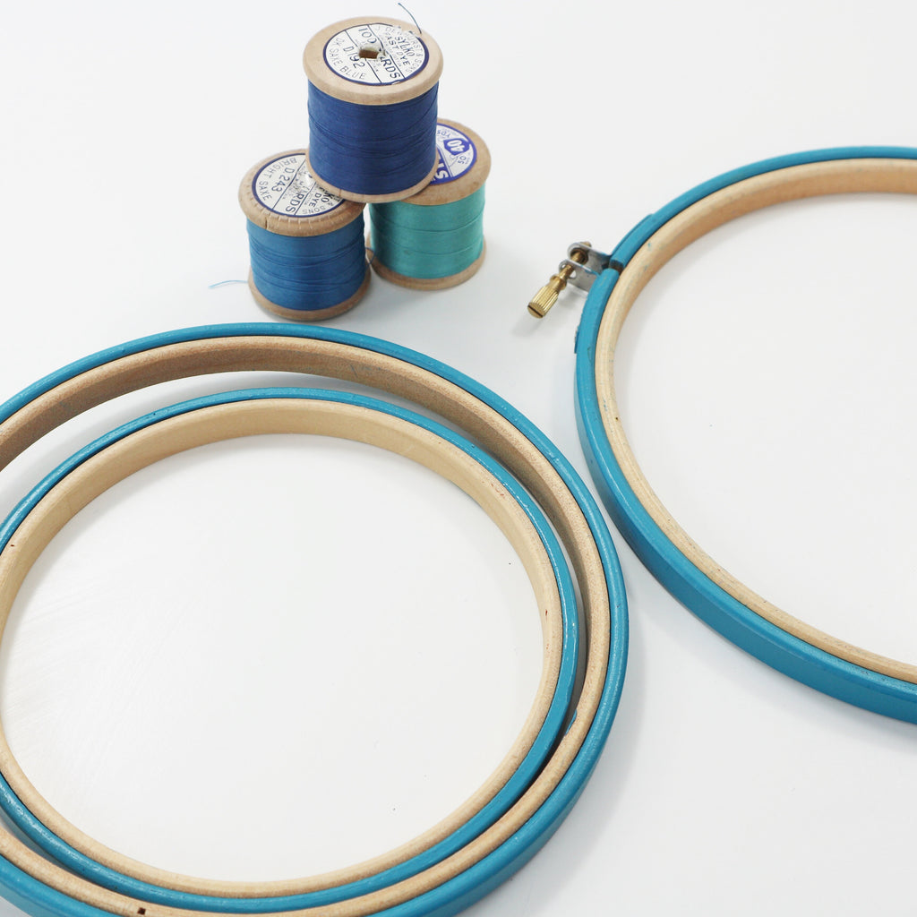 This deep turquoise green embroidery hoop is a beautiful way to finish your hand embroidery and other textile projects. This is a lovely versatile colour perfect for all kinds of projects.