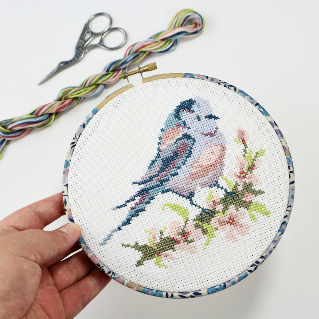 Long-tailed  Tit Cross Stitch, embroidery hoop Kit.
