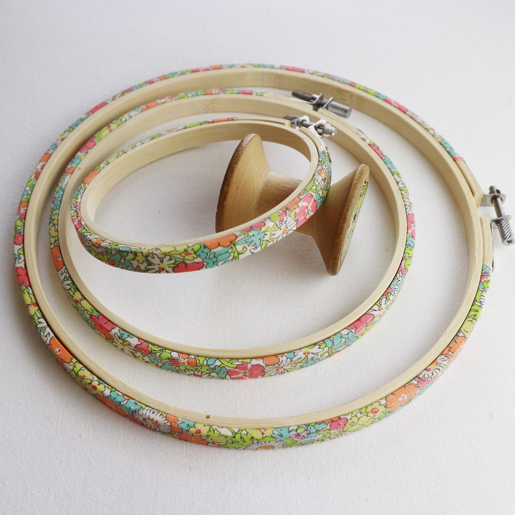 Bright Spring Floral Liberty Tana Lawn Fabric Wrapped Embroidery Hoops