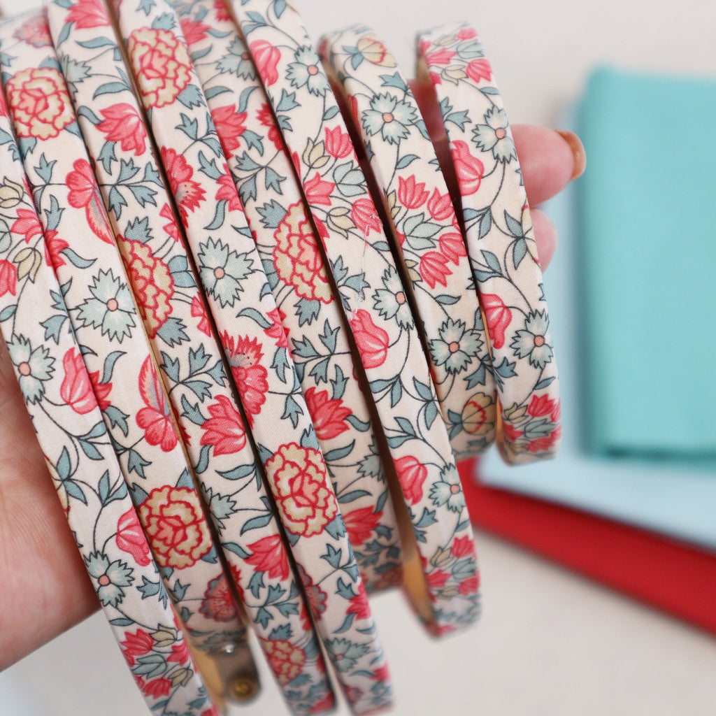 Coral Flower Print Liberty Tana Lawn Fabric Wrapped Embroidery Hoops