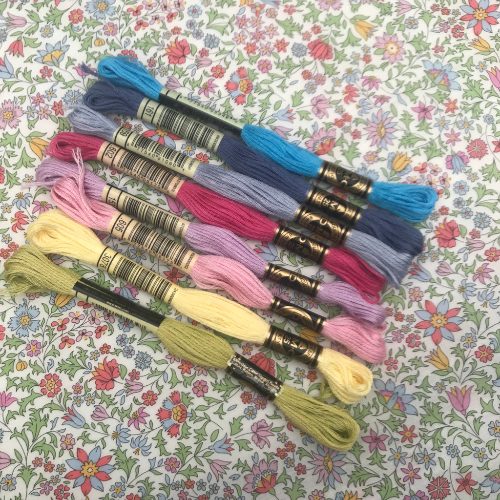 If you love the colours in this print you might be interested my set of DMC embroidery threads that perfectly compliment this design.