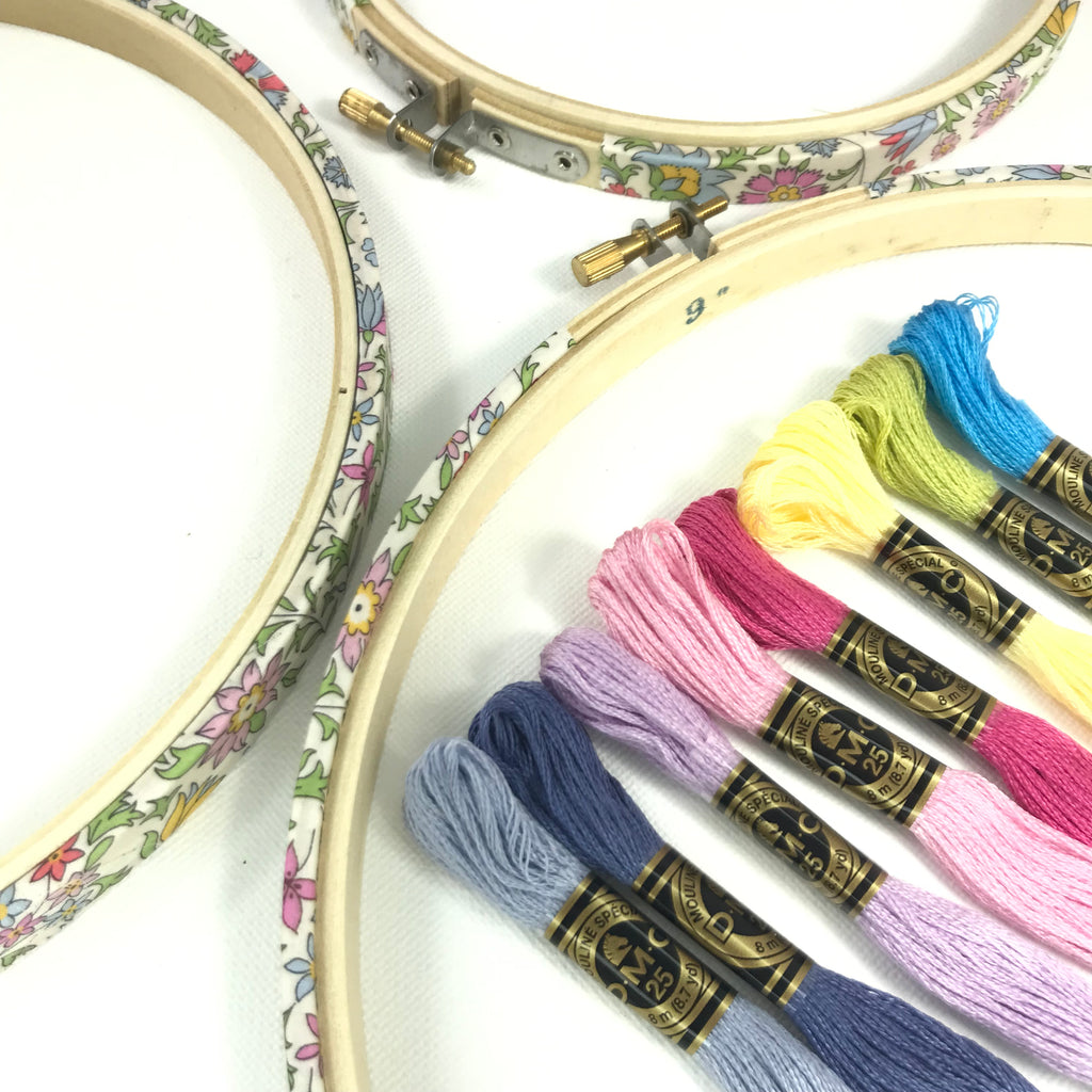 My quality wooden embroidery hoops are hand wrap with beautiful Tana Lawn Cotton for a smooth professional finish. My fabric covered embroidery hoops can be either used as a working hoop or as a frame to create beautiful pieces of wall art.