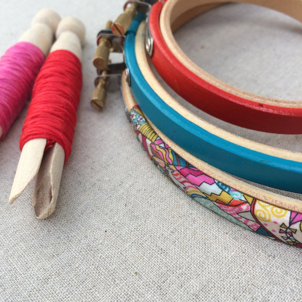 Tana Lawn, Liberty’s fabric collection was launched in the 1920s, named after the area in Africa where it was manufactured. Many of the stunning vintage prints (& lots of lovely new ones) are thankfully still available for us today. The soft cotton lends itself perfectly to my collection of pimped up hoops.