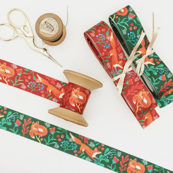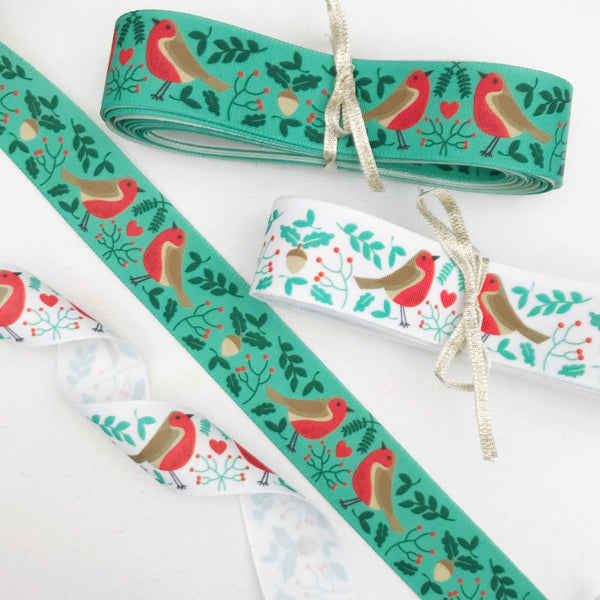 Woodland Robin, Christmas Ribbon. 25mm Wide