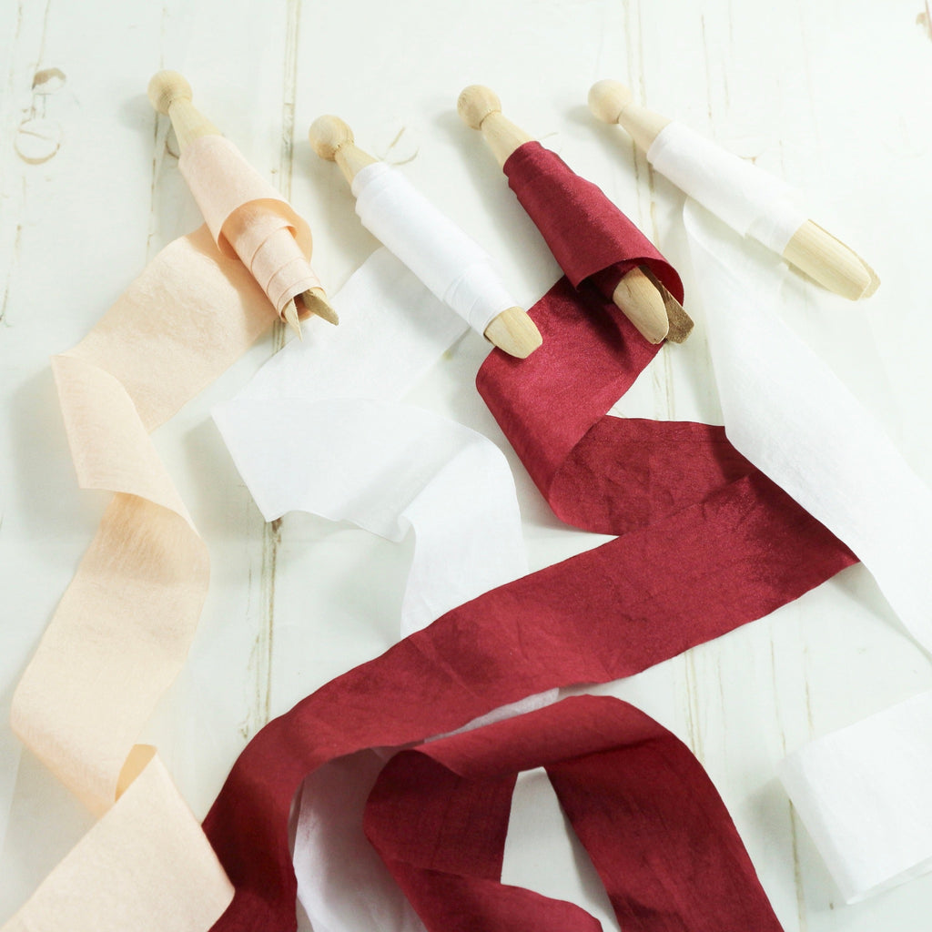 These ribbons are 1.5 inches wide and drape and tie beautifully in to bows making it perfect for gift wrapping and dressing your special day.