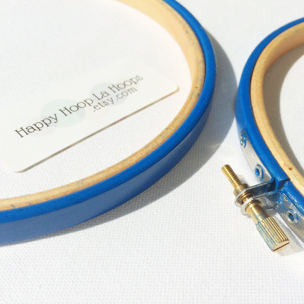These wooden hoops are hand-painted and varnished in artist-quality acrylic paints. This beautiful blue is a lovely versatile colour that will complement all kinds of projects.