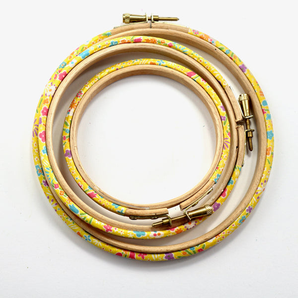 Yellow Embroidery Hoops. Kayoko Liberty Print.