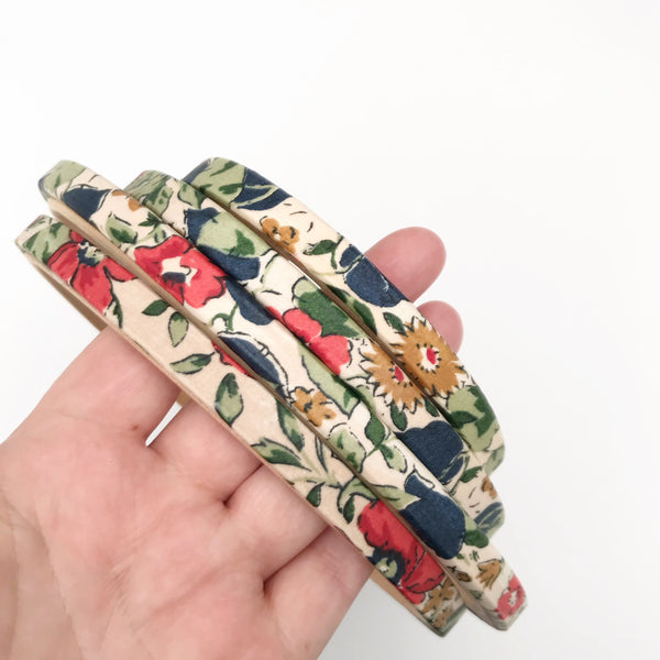 I make a large selection of beautifully covered decorative embroidery hoops for framing and finishing your embroidery, cross stitch and other textile projects. Choose from my wide range of floral and patterned embroidery hoops covered with iconic Liberty fabric.