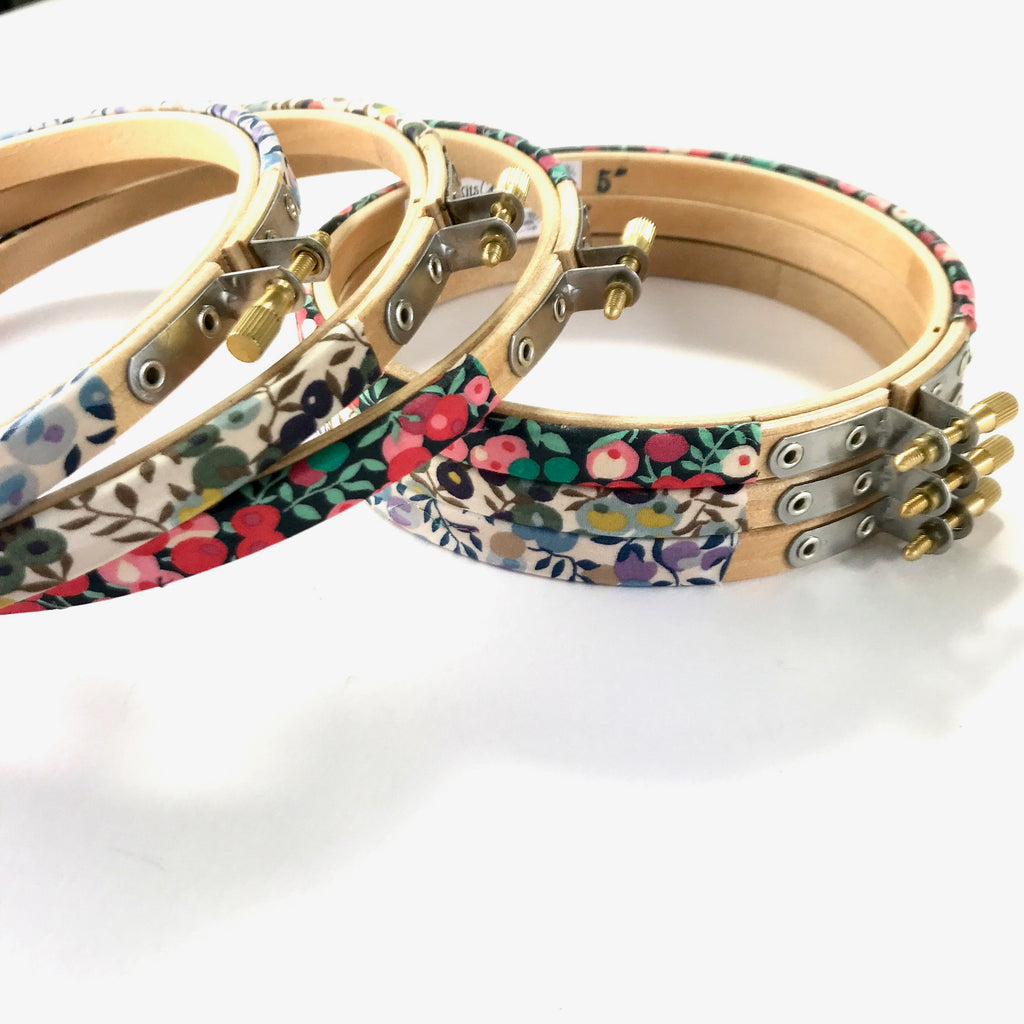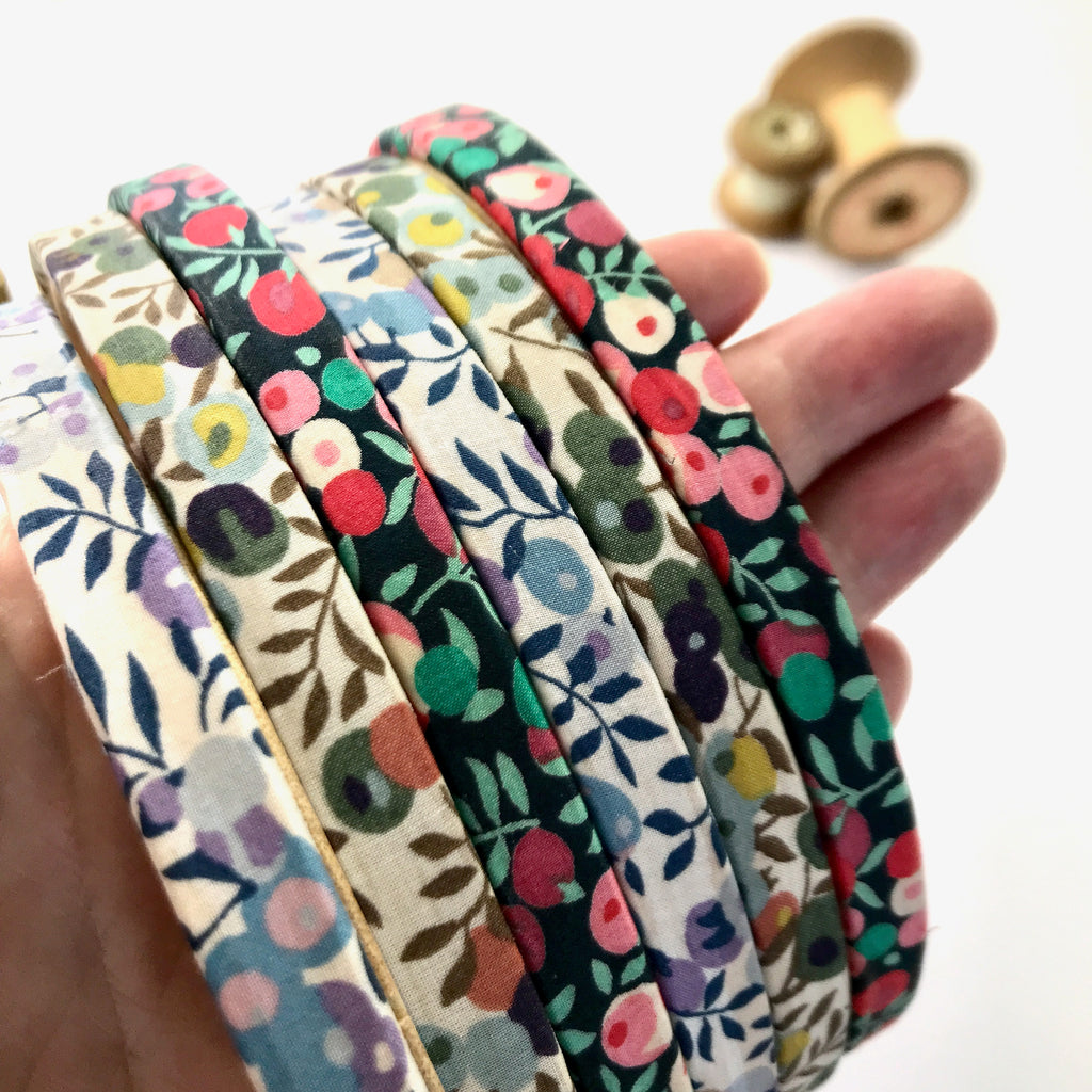 Wooden Embroidery Hoop Frames Wrapped in Liberyt 'Wiltshire Berry' fabric.
