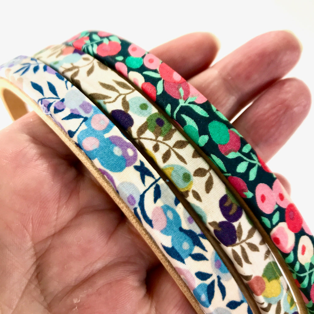 All of my High-quality wooden embroidery hoops are hand-covered in Liberty fabric.  This set of embroidery hoops features the beautiful Liberty of London 'Wiltshire Berry' print in three different colour ways. The set contains-