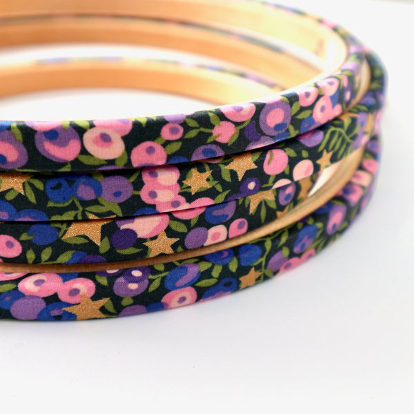 Purple, Fabric Covered Embroidery Hoops. Susanna Print.