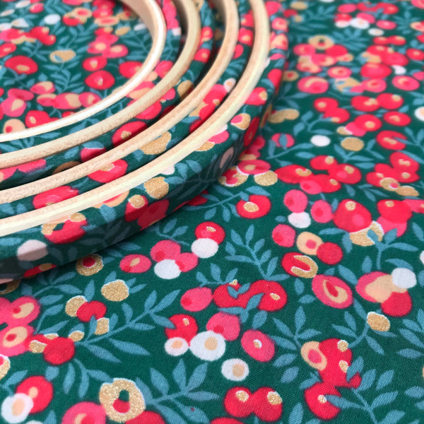 Green, Fabric Covered Embroidery Hoops. June Meadow Print