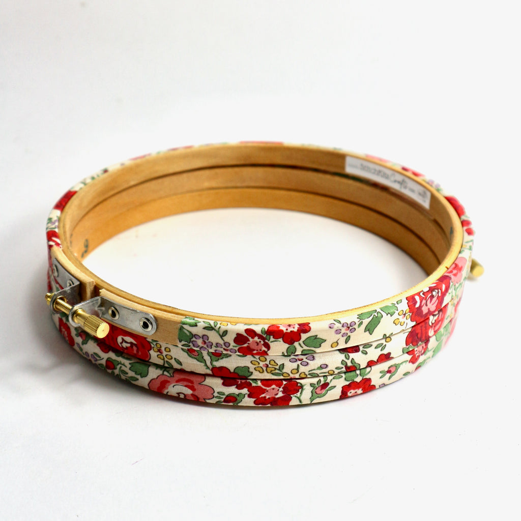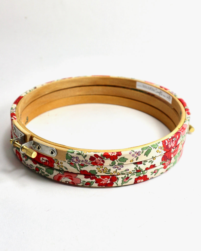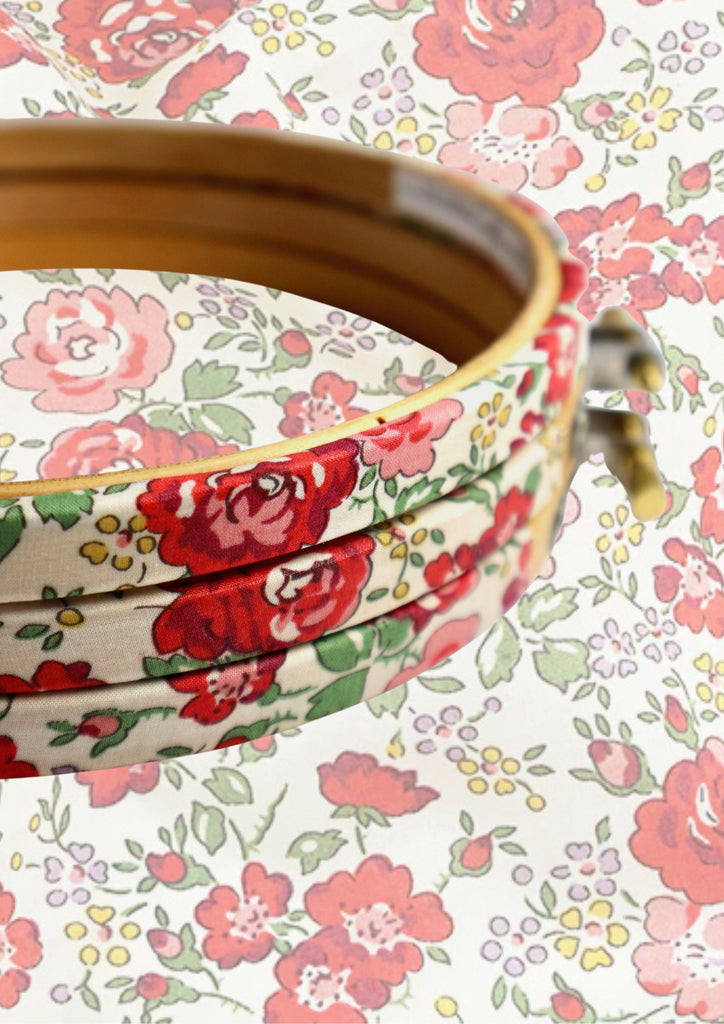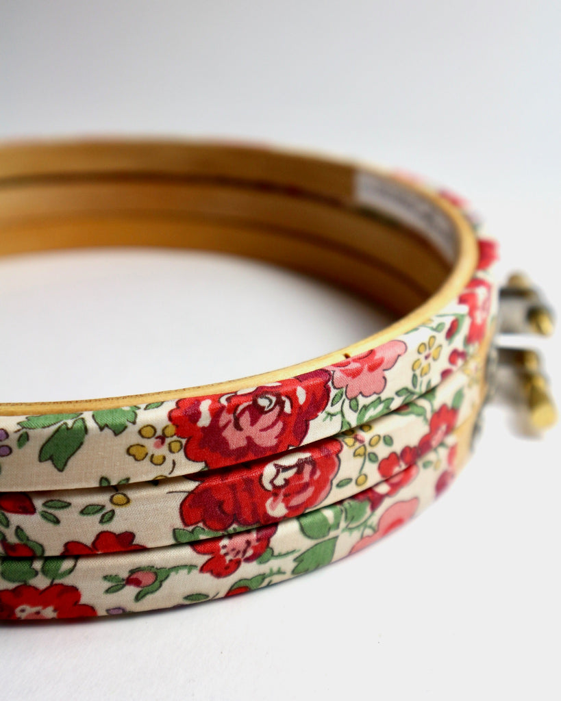 Petty embroidery hoops, hand covered with a fine Liberty of London fabric.