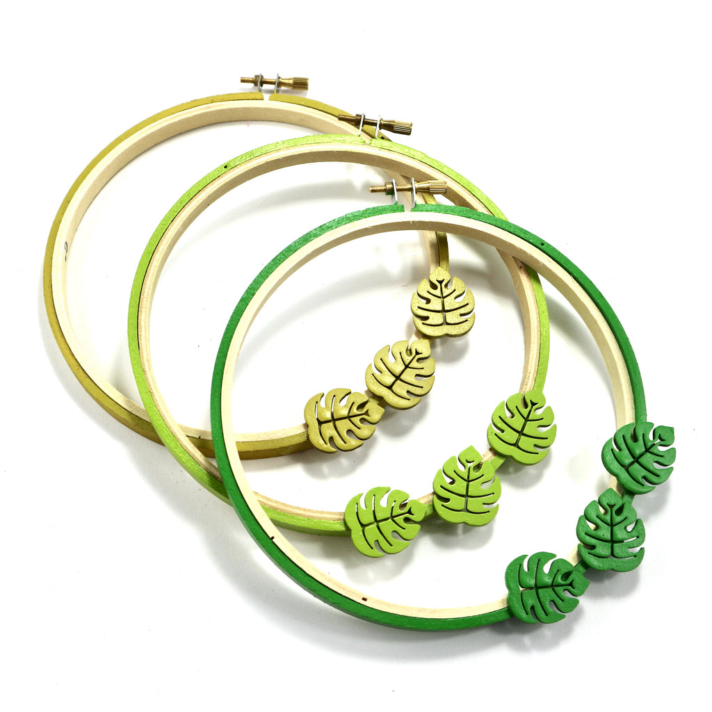 Hand painted Green embroidery hoops with 3D Cheese Plant Detail.