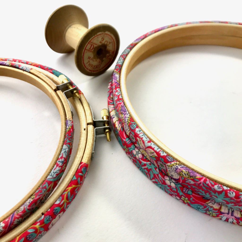 This embroidery hoop is wrapped in 'Strawberry Thief' fabric, adding a unique touch to your projects. These hoop features the Iconic 'Strawberry Thief' fabric designed by William Morris, a name famous within the Arts and Crafts movement. Wrapped in Liberty London's luxurious Tana Lawn fabric, this hoop adds an elegant touch to any embroidery project. Elevate your creative project with this unique hoop frame.