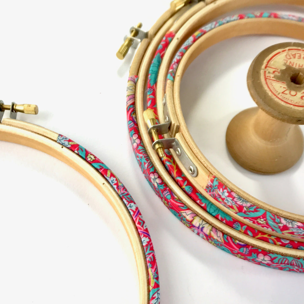 Red 'Strawberry Theif' Fabric Tana Lawn wrapped Embroidery Hoop