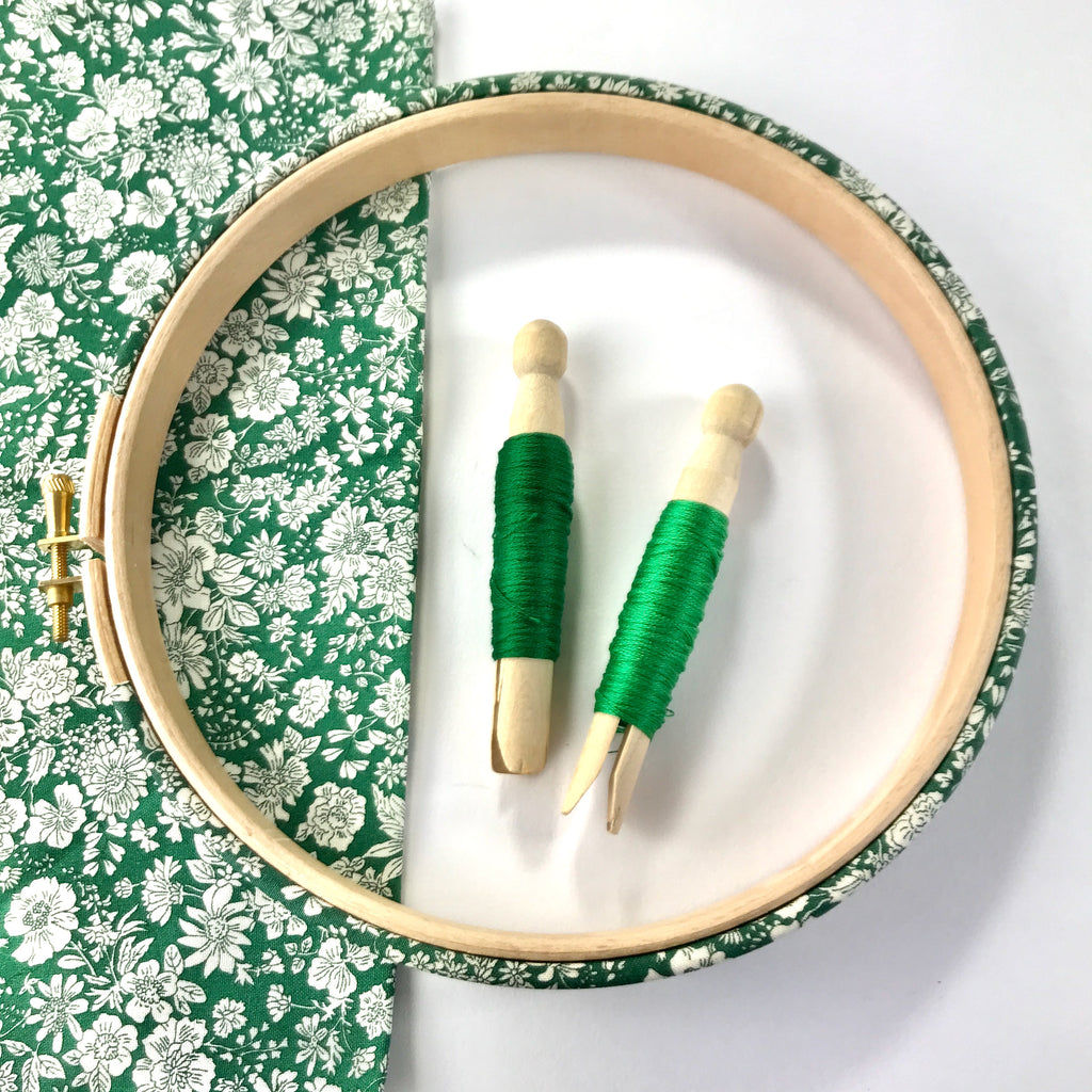This Evergreen coloured Embroidery hoop frame is a wonderful way to display your needlework. These Quilting style hoops are deeper than the regular embroidery hoops. The 20mm depth showcases the pretty Emily Belle print and adds an extra pop of colour to your work.