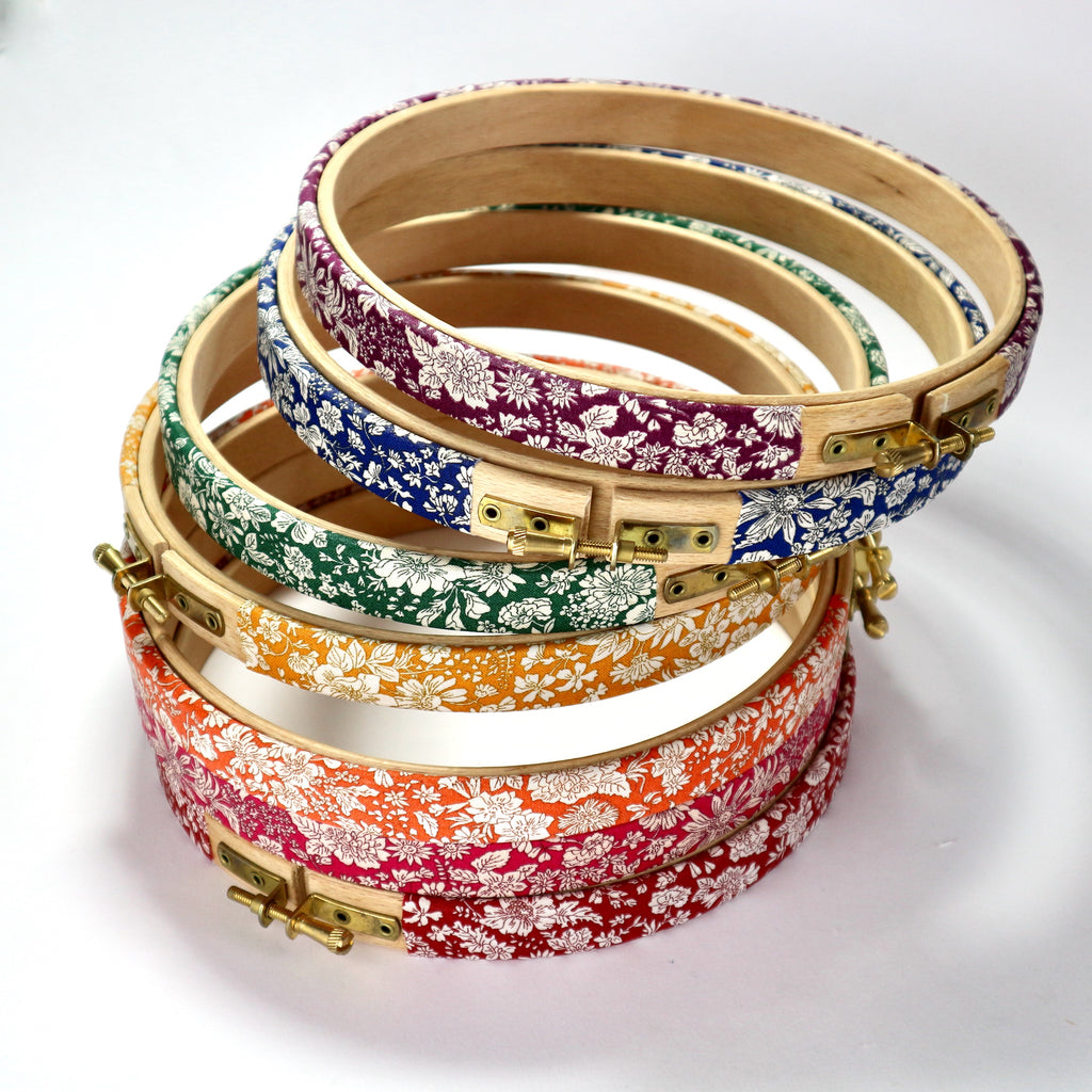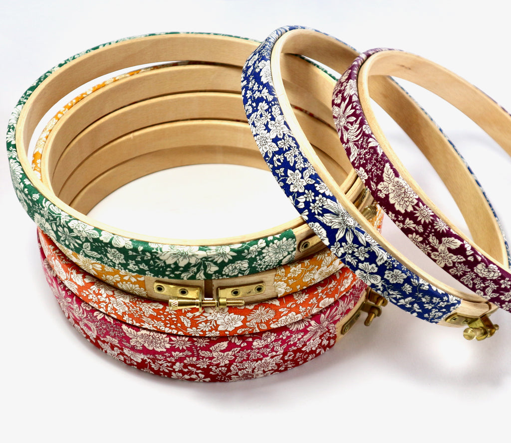 These are a wonderful way to create a unique, colourful Hoop wall. These Quilting style hoops are deeper than the regular embroidery hoops. The 20mm depth showcases the pretty Emily Belle print and adds an extra pop of colour to your work. I cant wait to see what you create!