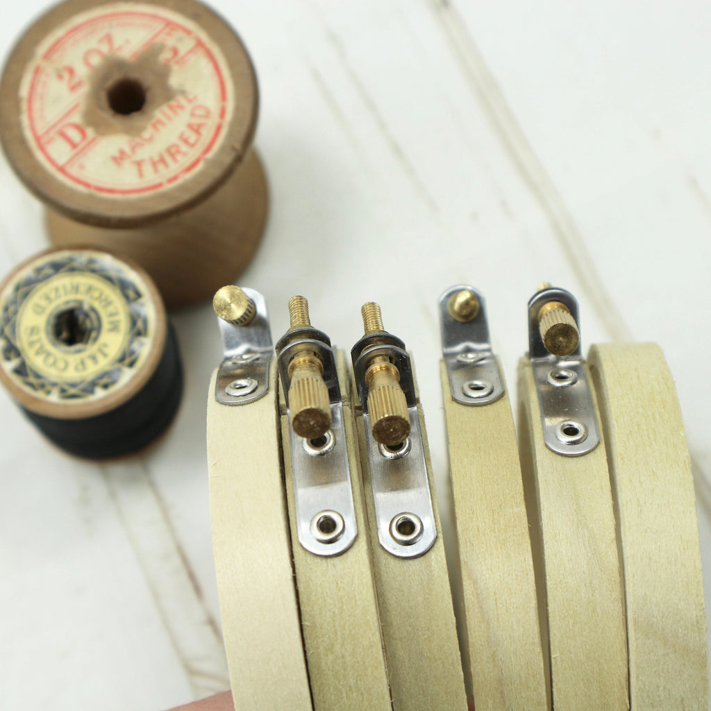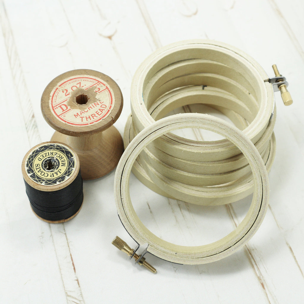 These are a high quality 3 inch wooden embroidery hoop with a brass fixing.
