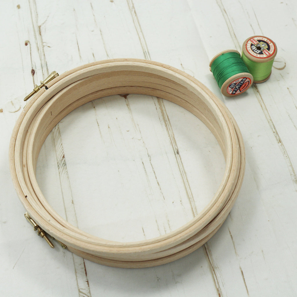 These lovely quality, Medium sized, 7 inch wooden embroidery hoops made from a close grain Beech wood and are wax polished so that the radius edges are smooth and easy to work with.
