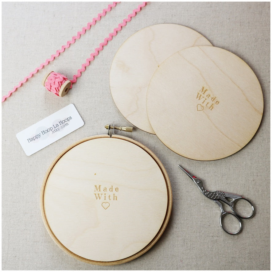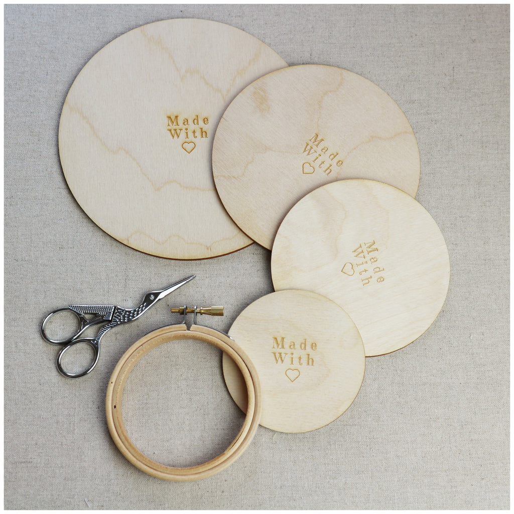 Either choose my signature, etched 'Made with love' design. These are perfect for finishing your stitched gifts. Alternatively you may prefer a more minimal look or wish to customise these yourself. If that is the case go for the Blank option which are blank wooden discs.