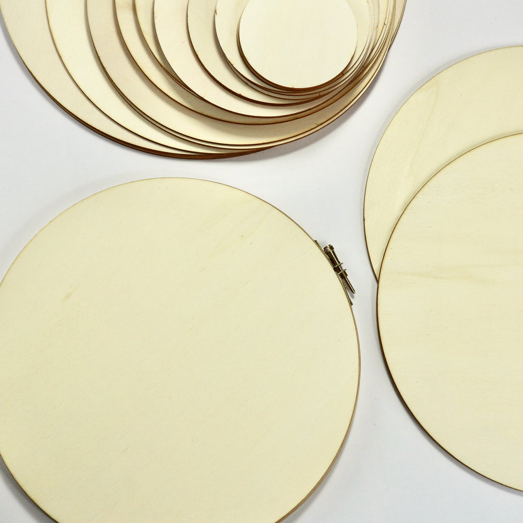 These wooden discs are made from Poplar ply wood and each size comes in a choice of 2 different designs.