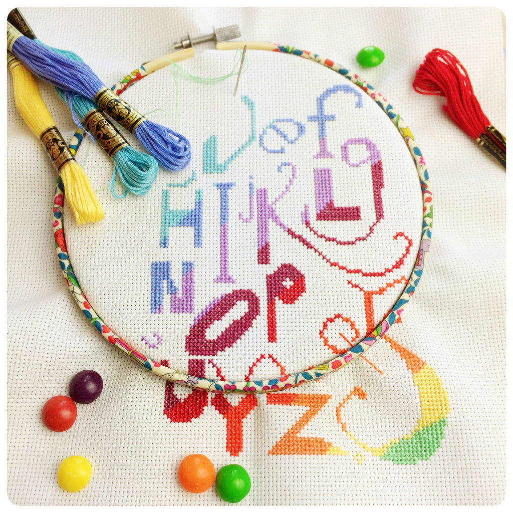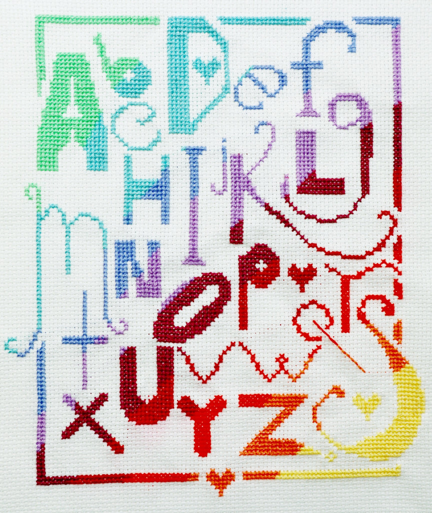 For century’s ladies have used the alphabet to display their needle craft skills. Create your very own masterpiece that will last the test of time. This Modern, Rainbow Alphabet sample design merges the old with the new and is sure to become a family heirloom.