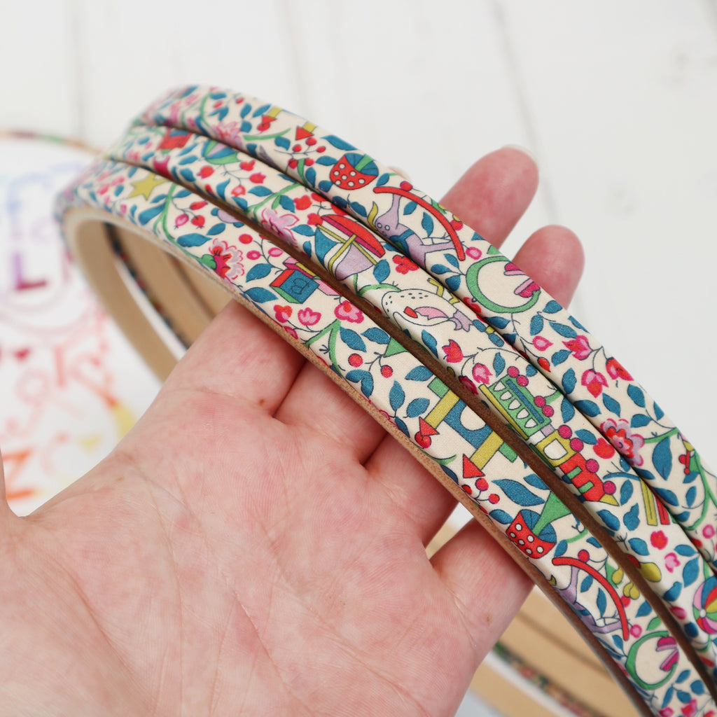 A 9 inch decorative embroidery hoop ( choose from either a 'Floral' hoop or a 'Toy and Leaf' print.