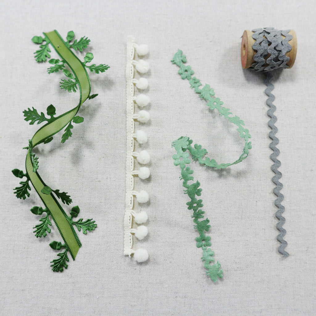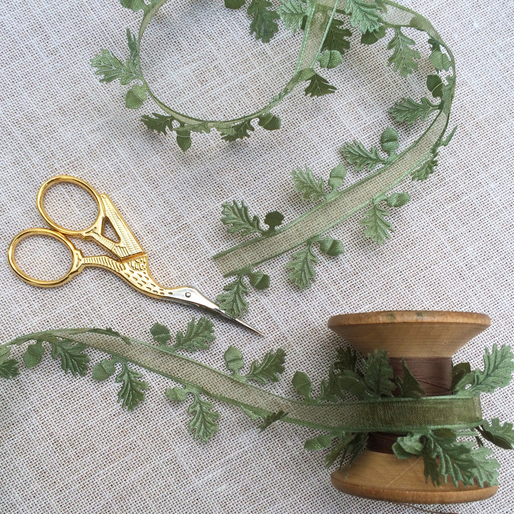 12 mm wide, sage green cut out, felt birds, flowers and hearts.