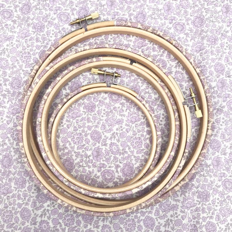 My hoops are available from a mini 3 inch hoop right up to a large 12 inch embroidery hoop. Simply select the hoop size appropriate to the size of your project and fabric you are stitching on. Hoops are measured across the diameter of the embroidery hoop, from the inner edge of the outer hoop. When framing embroidery wall art I like to leave around an inch between my stitching and the hoop.
