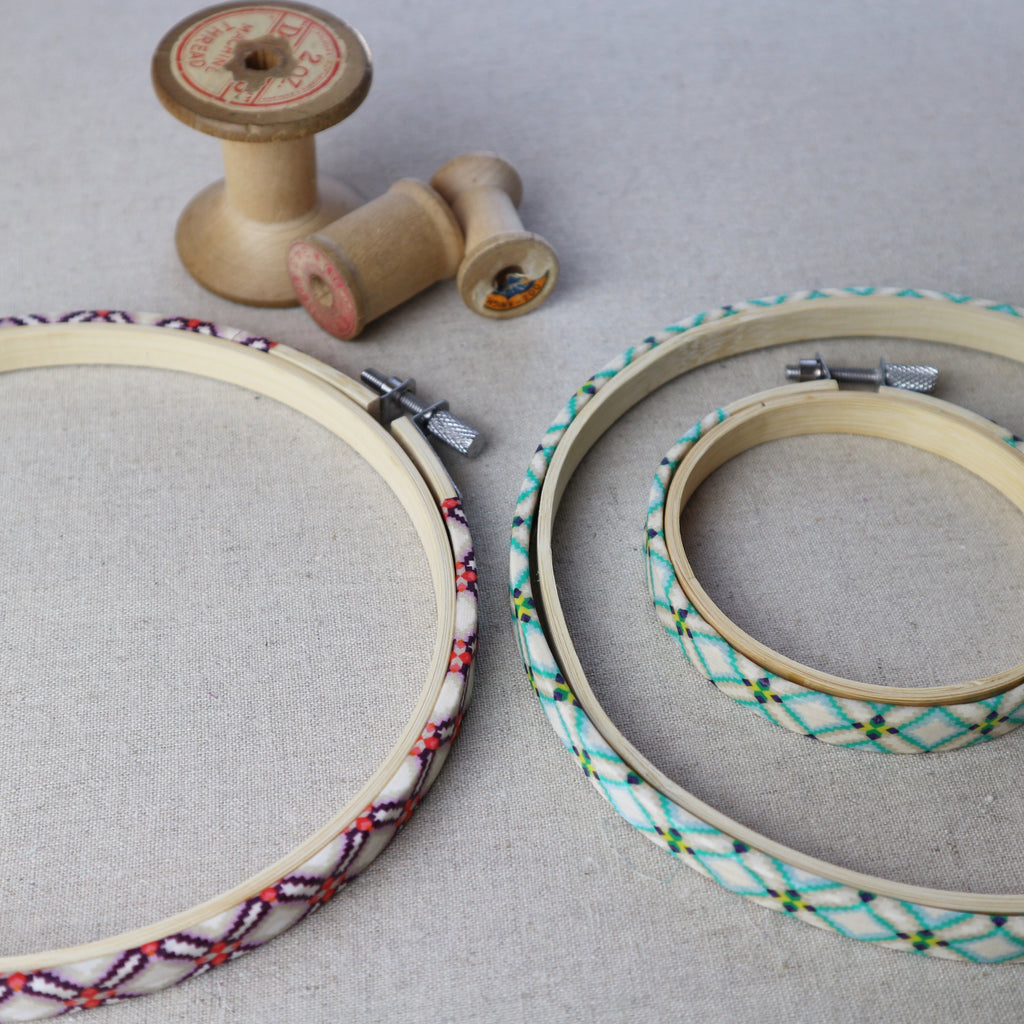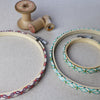 Sea Green Fabric Covered Embroidery Hoops. 'Smock' Print