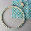 This beautiful 'Smock' Print featuring a striking geometric pattern in Turquoise Green with pops of yellow. I use quality wooden embroidery hoops and hand wrap them with beautiful Tana Lawn Cotton for a smooth professional finish.