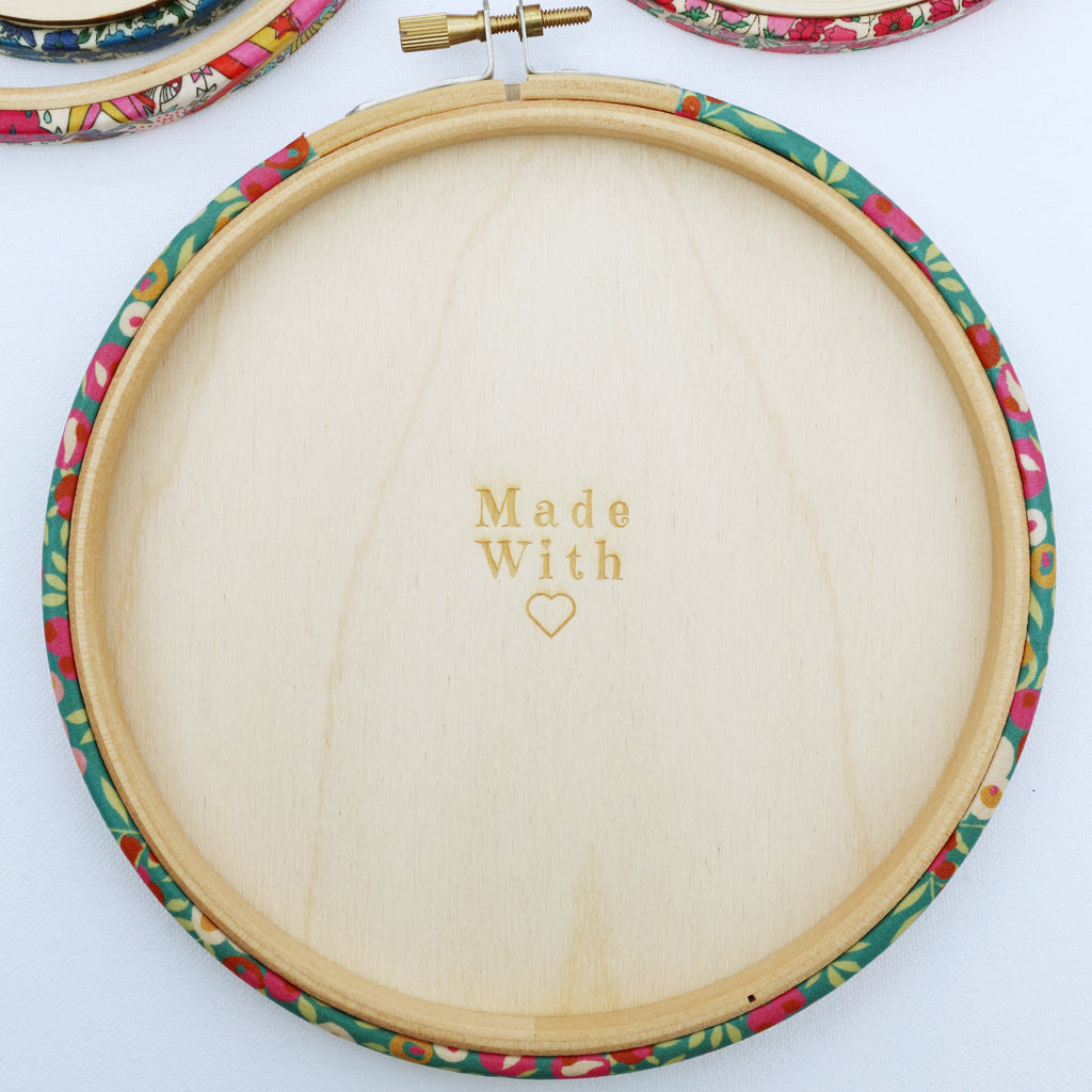 These beautiful embroidery hoops are hand Wrapped with a colourful Liberty Tana Lawn cotton.
