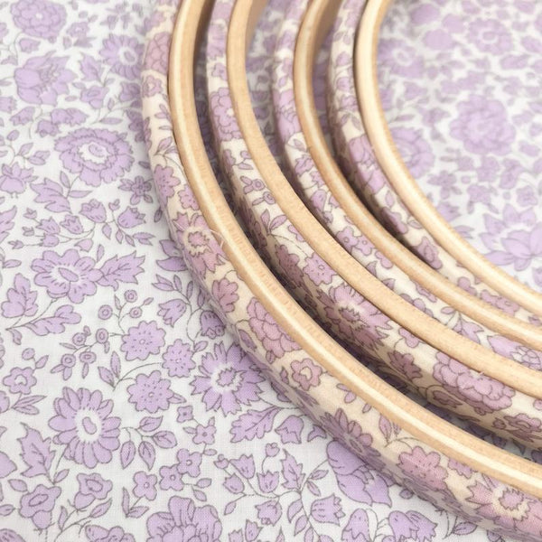 Lilac, Fabric Covered Embroidery Hoops. D'Anjo Coast Print