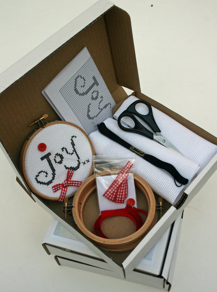 Stitch your own set of wall hanging decorations with this adorable ‘Love, Joy & peace’ Cross Stitch Kit.