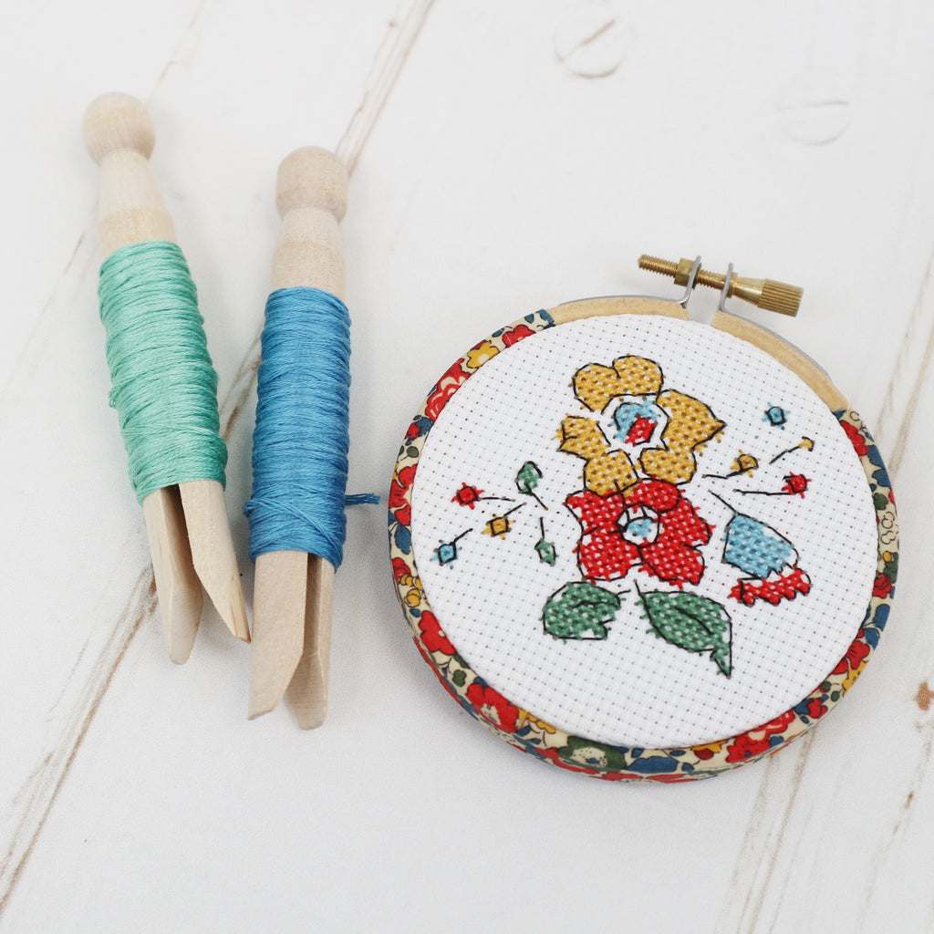 Floral Wall Hanging Kit. Mini Cross Stitch, Embroidery Kits. Betsy inspired