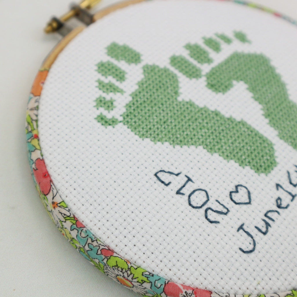 Green 'Baby Feet' Cross Stitch Hoop Kit