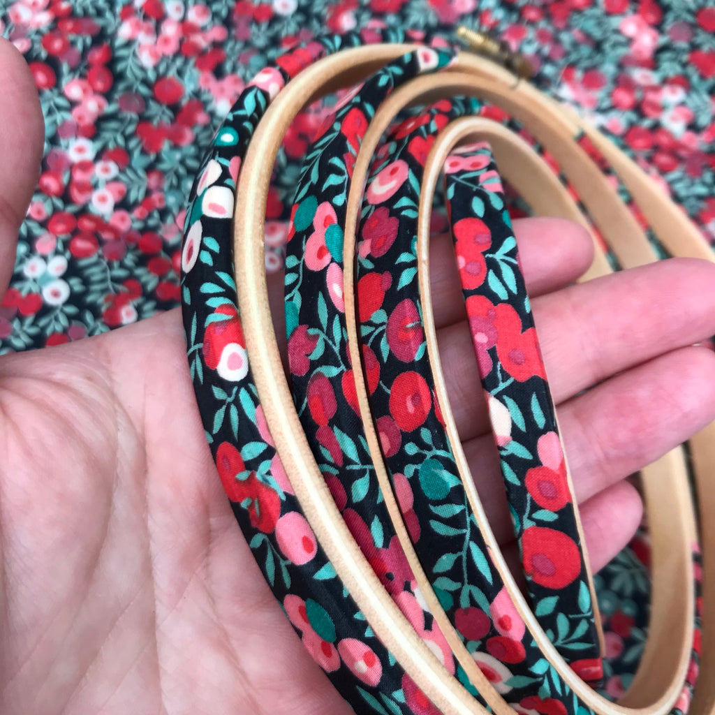 I use quality wooden embroidery hoops and hand wrap them with beautiful Tana Lawn Cotton for a smooth professional finish. Wiltshire Berry is one of Liberty's of London classic prints and is one of Liberty's most recognisable and well loved designs. The design features lush berries and leaves.