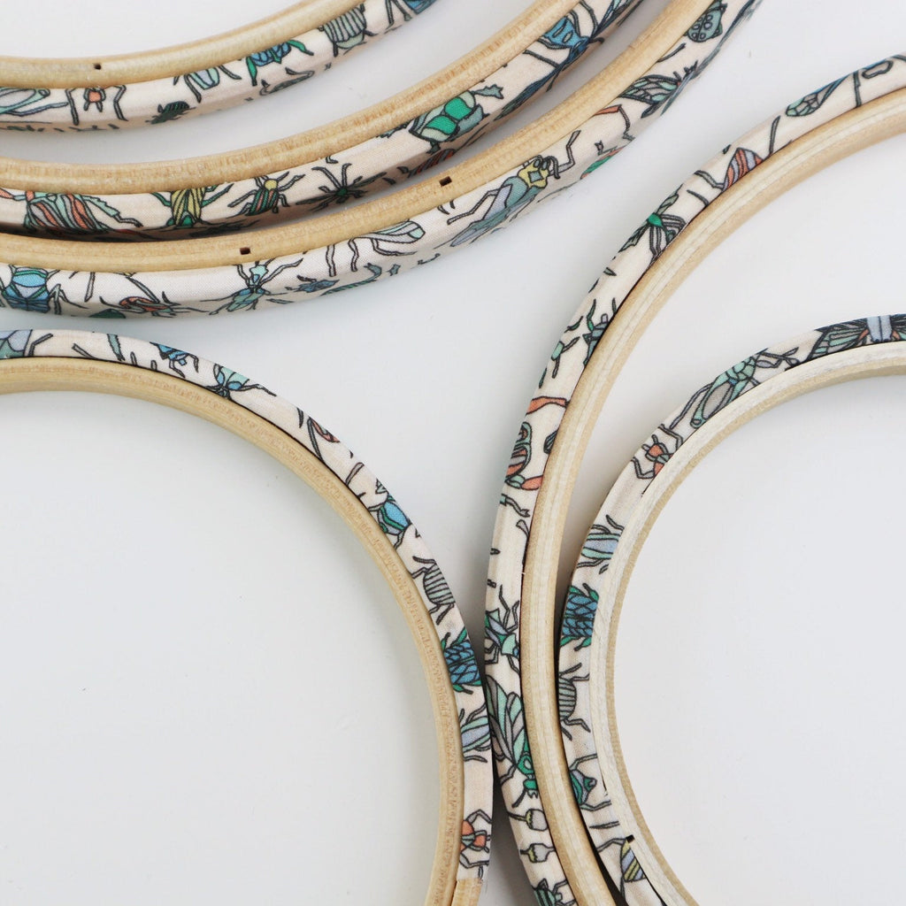 HappyHooplaHoops are unique, wooden embroidery hoops, hand wrapped in genuine, libertys of London, Tana Lawn cotton.