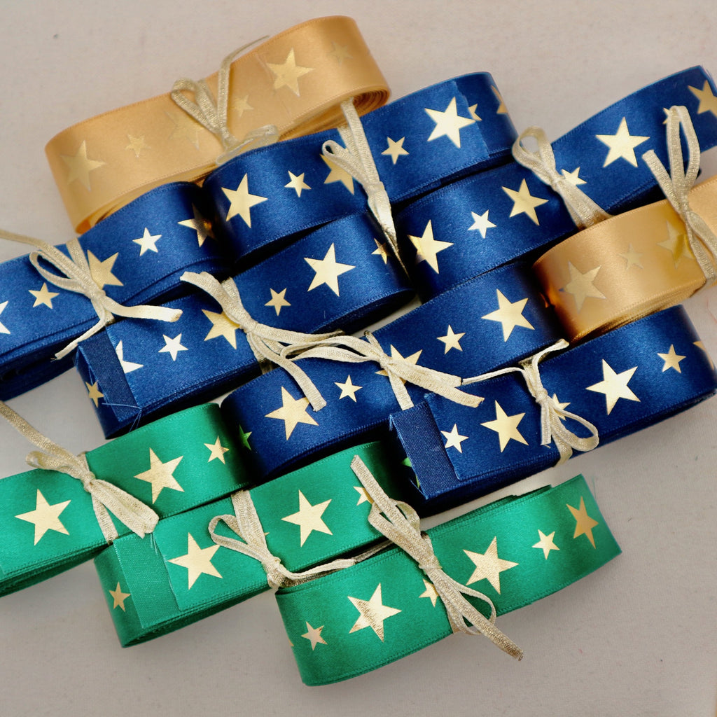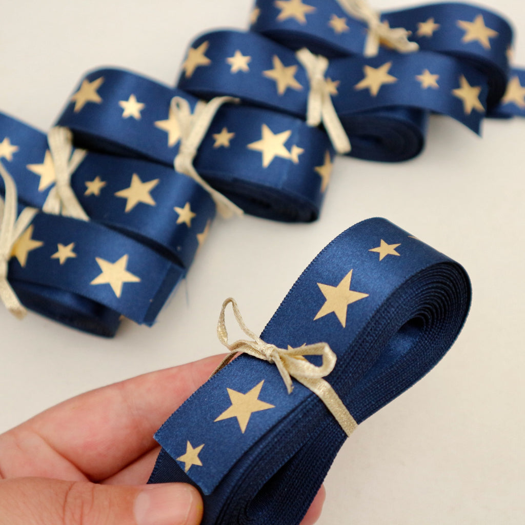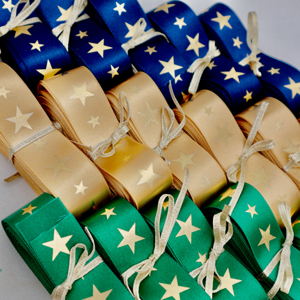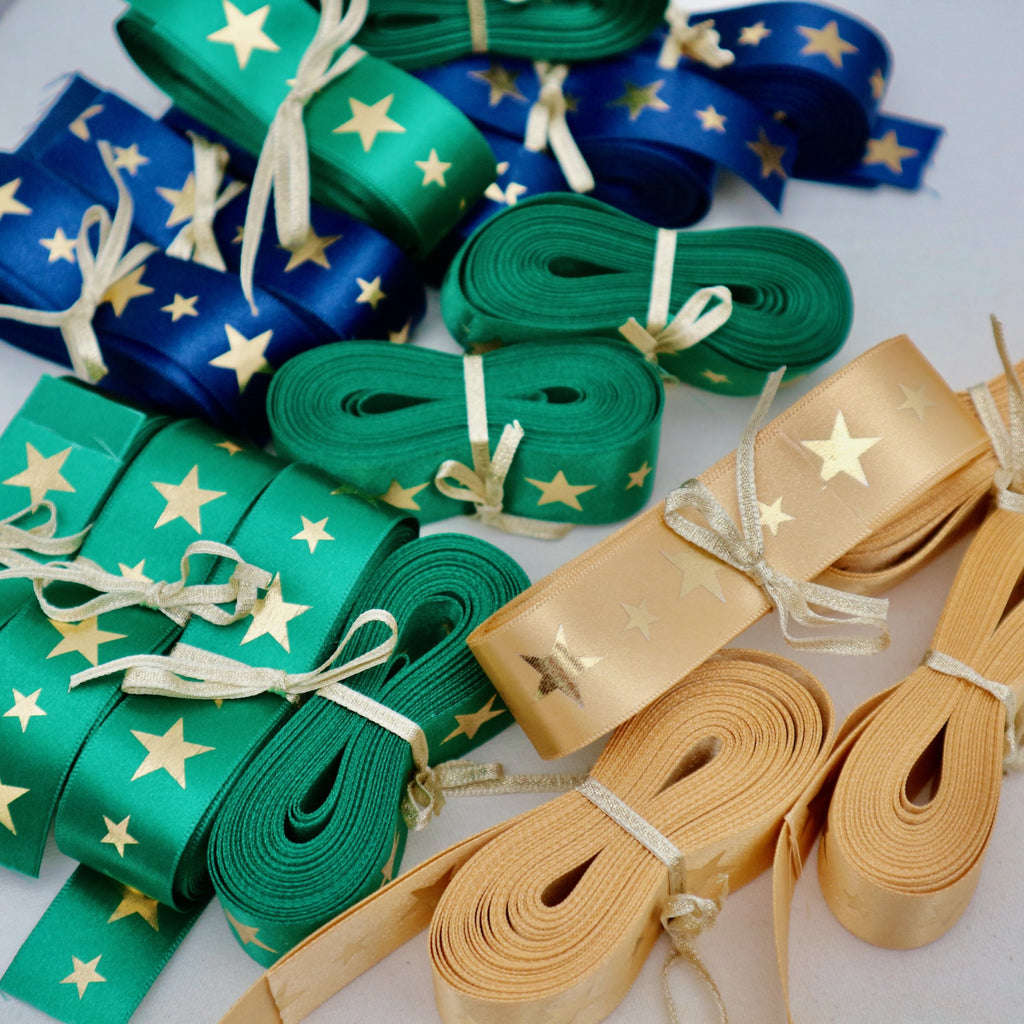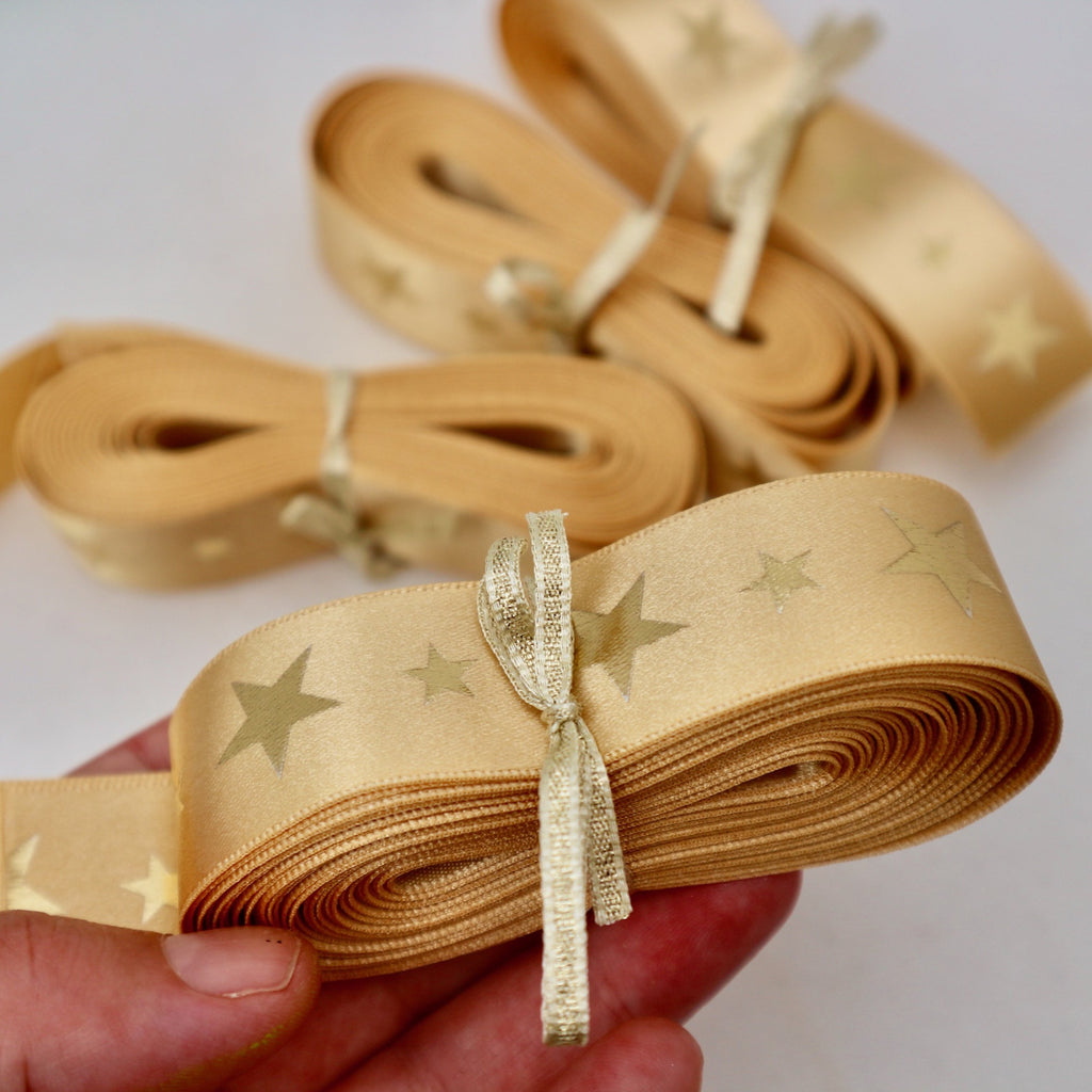 Golden Star Satin Ribbon, Christmas Ribbon.