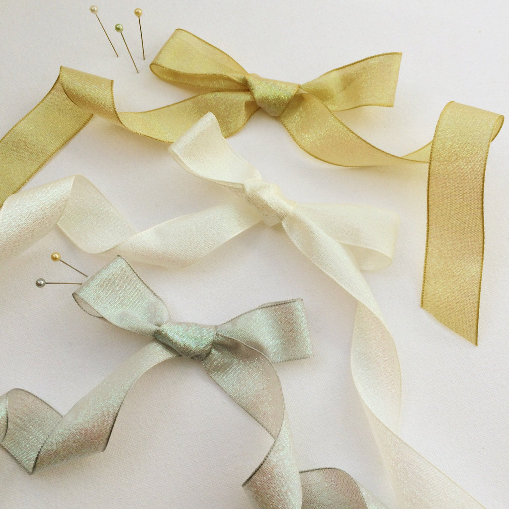 This is 5 meters of pretty ribbon,  available in three colours. Each colour has an iridescent glow, perfect for adding a touch of class and glamour to any occasion or project.