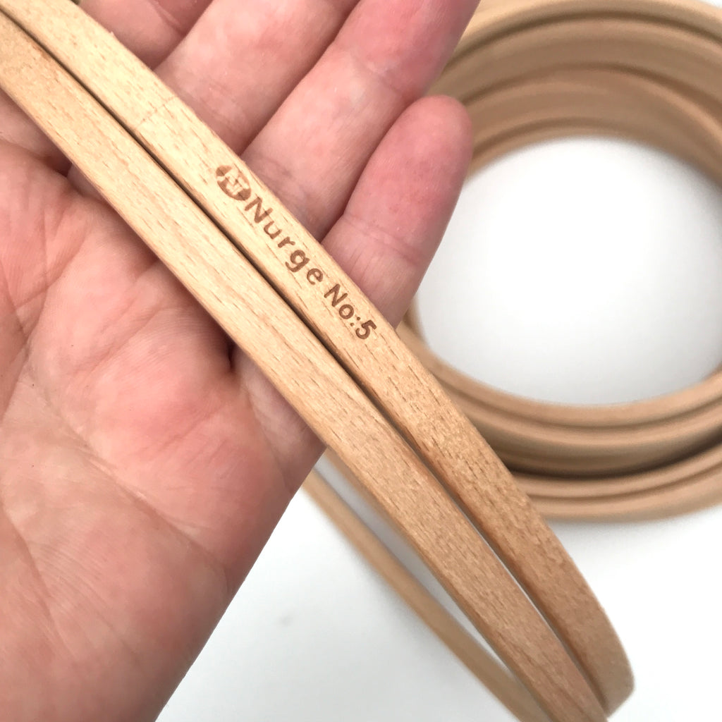 These hoops are tooled from hard beech wood which is used for its tight grain. Nurge hoops are fine sanded and hand polished to a smooth natural wood finish.
