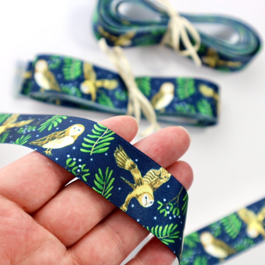 You will receive 4 meters of this is a lovely wintery ribbon with a beautiful owl and mistletoe design.