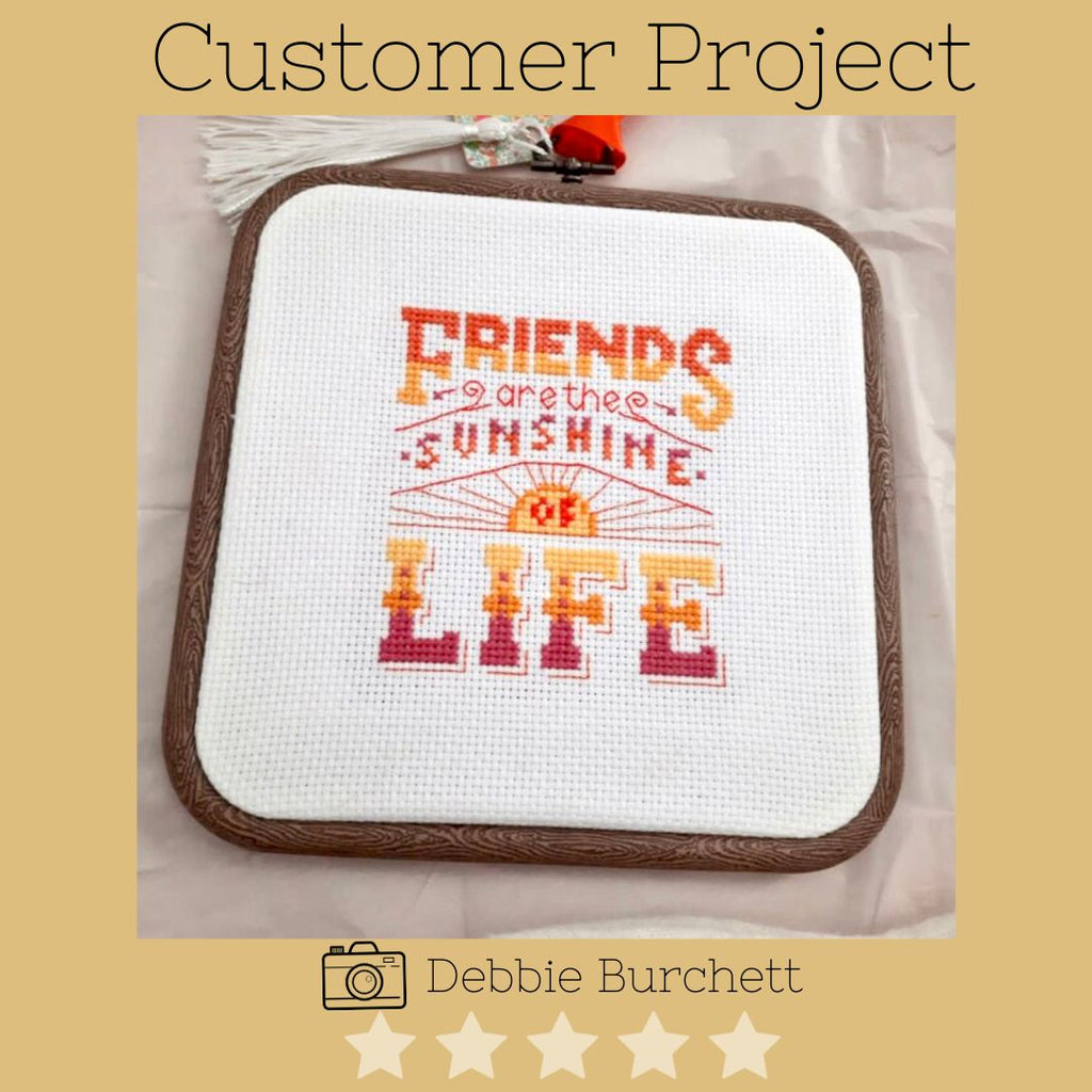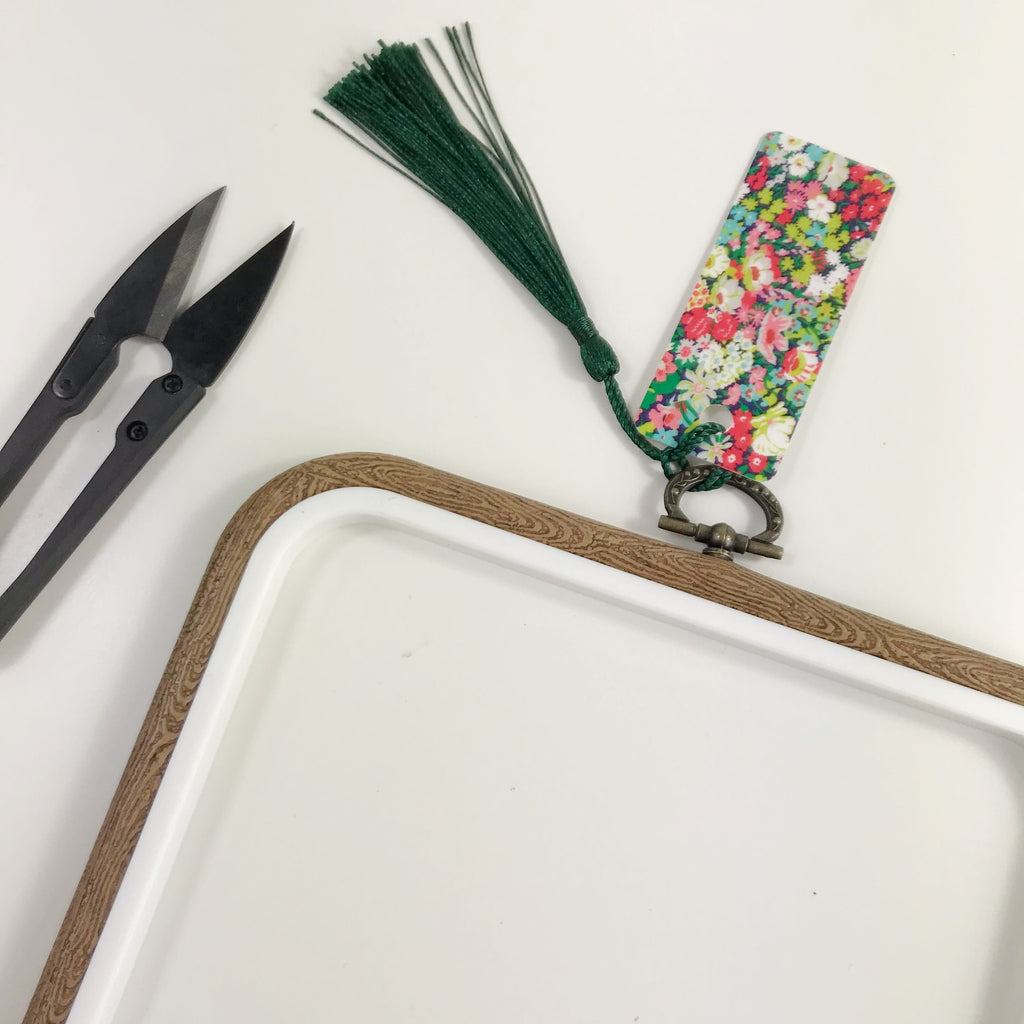 The outer hoop is made from a flexible plastic with a dark wooden effect finish. The flexible outer hoop allows fabric to be stretched over the inner hoop.The outer rim is made of a flexible plastic to allow fabric to be stretched over the inner hoop.