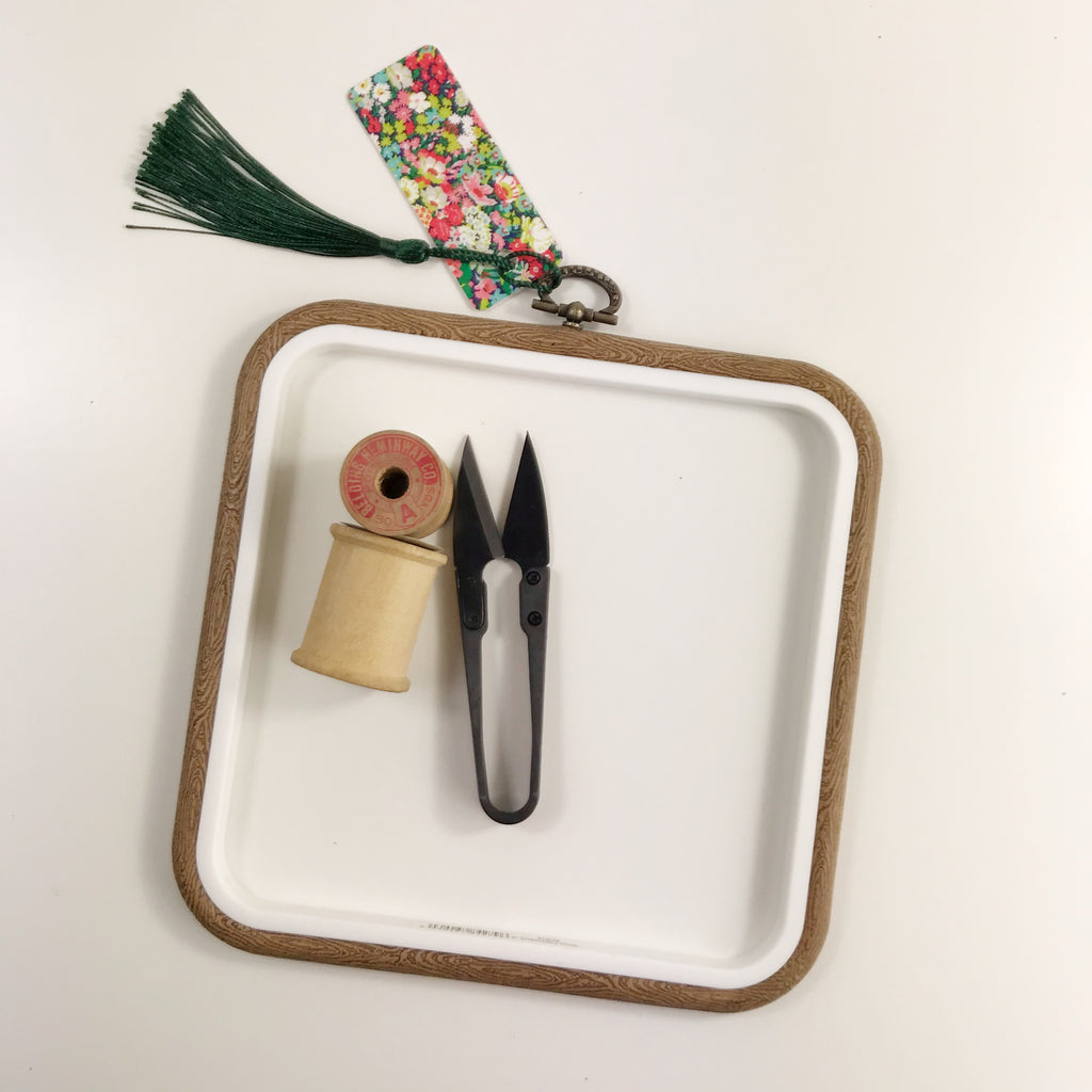 Plastic Flexible Embroidery Hoop With Dark Wood Effect Finish.
