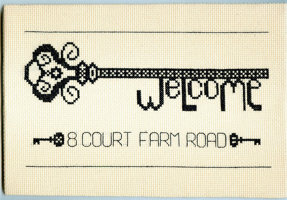 Welcome your guests to your home with this personalised cross stitch sampler.